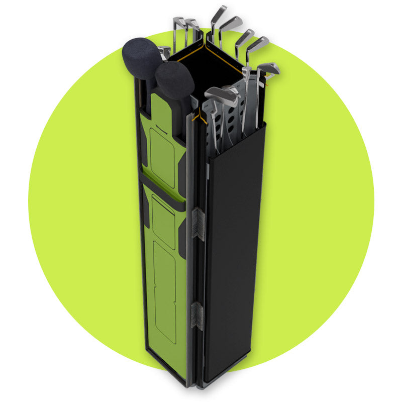 Simplify your golf travel logistics with The Journey's stackable nesting design, seamlessly fitting into any vehicle with ease. From compact cars to spacious SUVs, traveling to your play destination has never been more convenient.